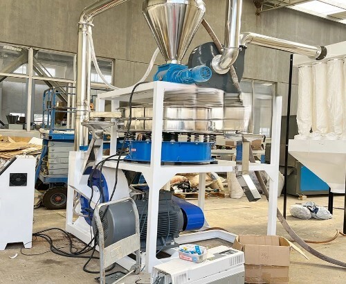 Станок для измельчения ПВХ доступен с диаметром диска от 300 до 800 мм. Центробежная сила перемещает материал через зону шлифования, и полученный порошок собирается с помощью воздуходувки и циклонной системы. В зависимости от области применения машины могут быть оснащены цельным шлифовальным или шлифовальным сегментом.