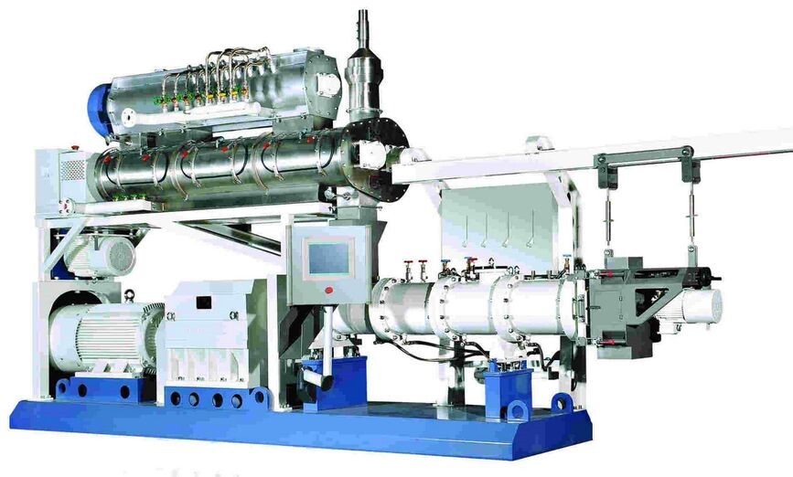 Двухшнековый кормовой экструдер SSEP160 относится к комбикормовым заводам, для приготовления различных рецептур обогащенных и обеззараженных кормов для животных. Кормовой экструдер с двумя шнеками SSEP160 установлен на опорную металлическую станину. Тщательное равномерное перемешивание корма под высоким давлением и температурой, в ходе которой уничтожаются даже такие вредоносные микробы, как сальмонелла. Кормовой двухшнековый экструдер SSEP160 оснащается системой автоматического управления на базе микропроцессора. Оператор имеет возможность хранить в памяти машины различные рецептуры, обеспечивать последовательность пусков, отслеживать правильность выполнения введенных параметров на мониторе пульта.