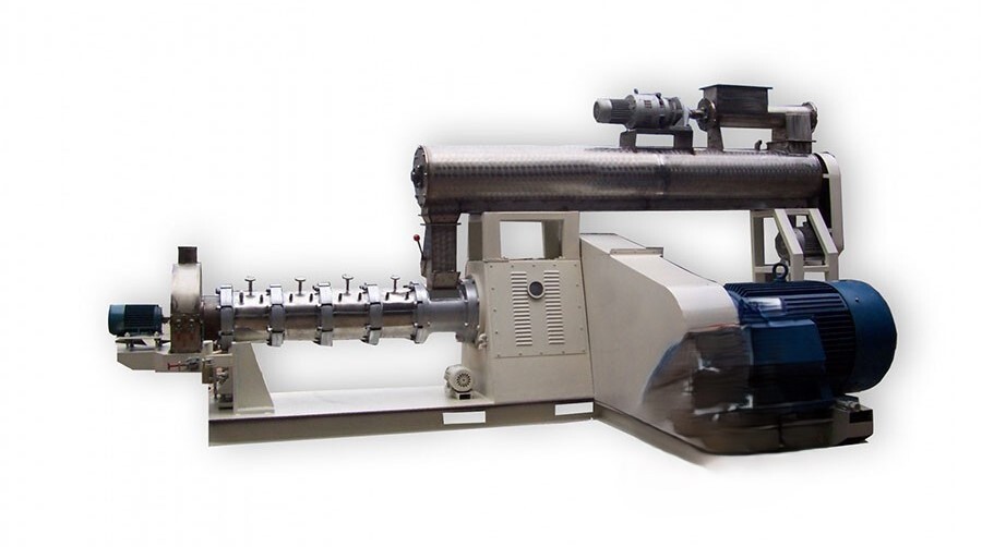 Экструдер для кормов с одним шнеком ZWEP200 представляет собой универсальный электромеханический агрегат, предназначенный для комбикормовых заводов сельскохозяйственной отрасли, где с его помощью производят обогащенные обеззараженные корма из сои, кукурузы и т.п. для выращивания свиней, птицы, рыбы и креветок. Одношнековый кормовой экструдер ZWEP200 состоит из следующих элементов: Плоское металлическое основание служит для крепления узлов и механизмов, а также для обеспечения общей устойчивости в ходе динамической части рабочего цикла. Главный электродвигатель предназначен для подачи питания на приводные устройства, а также для сообщения крутящего момента главному валу через ременную передачу и редуктор. Загрузочное устройство с приводным шнековым питателем предназначено для приёма сырья и его первичного перемешивания. Устройство кондиционирования. Магнитный улавливатель служит для устранения металлических примесей из первичного сырья. Рабочий орган винтом обеспечивает тщательное термическое смешивание материалов под действием нагнетания высокого давления и образовавшейся повышенной температуры. Головка экструдера служит в качестве выпускного отверстия. Компрессионный затвор. Модуль контроля плотности. Клапан системы увлажнения.